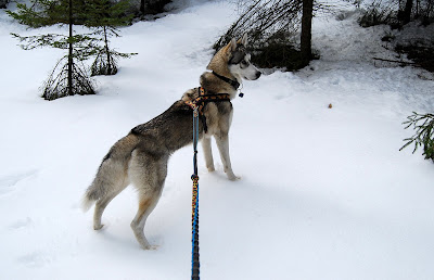 Da in dieser Gegend recht viel Wild steht, war der Schnee geradezu mit Trittspuren übersät und Yukon war ganz aus dem Häuschen. :-)